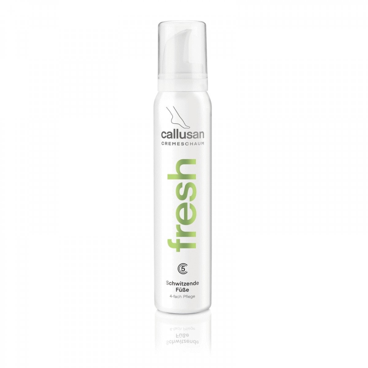 Callusan Fresh – prakaituojančių ir drėkstančių pėdų putos. Aktyvios kreminės putos Callusan fresh normalizuoja prakaito išsiskyrimą ir užtikrina ilgalaikį gaivumą. Putos parturtintos migdolų aliejumi ir alantoinu, kurie padeda atsistatyti po įvairių išorinių veiksnių nuvargintai odai, nepalikdamos lipnaus sluoksnio. Padeda išvengti nemalonaus pėdų kvapo, suteikia papildomą apsaugą grybelio pažeistai odai.